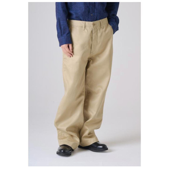 材料是100%棉质的腰围布料,经过冷加工,有着恰到好处的光泽感,穿入后可以享受经年变化的底层。