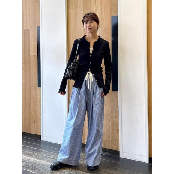 试着穿了一件漂亮的领子和扣子的肋条针织衬衫○ 袖口和下摆的妆容也是重点,所以不嵌入底部的造型也很棒。具有伸缩性的肋骨材料,柔软的触感很好,总之很舒服◎ bag【FEEL AND TASTE】 EUX75040 ¥41,800